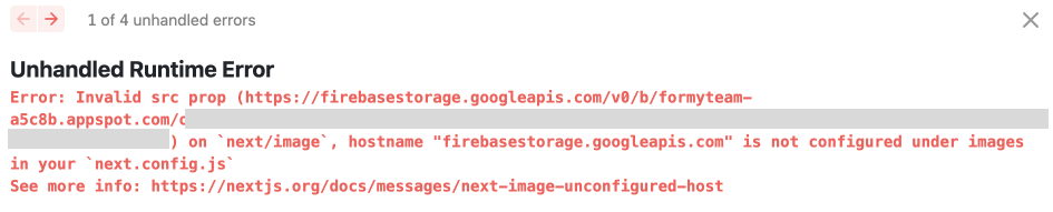 해당 에러는 Next.js의 Image태그를 사용해서 외부의 이미지를 불러올 경우 해당 이미지에 대해 보호하려고 발생하는 오류로 확인되었다.